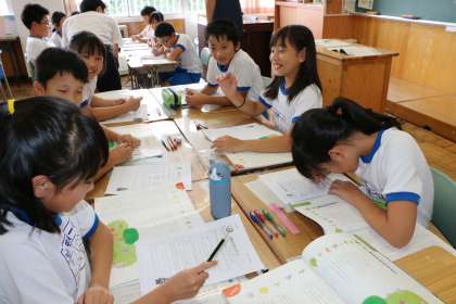 写真は、教育実習生による5年2組の「道徳」の授業の様子です!