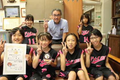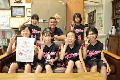 F・Kあさかミニバスケットボールスポーツ少年団のメンバーが、校長室に優勝報告に来ました!