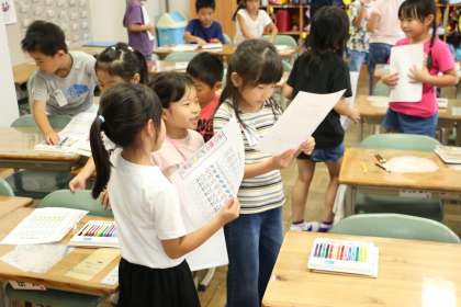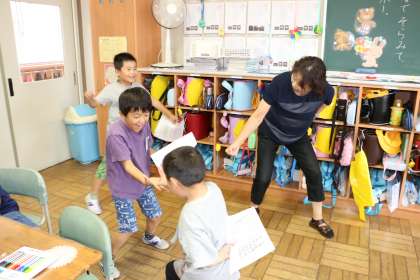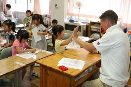 1年生の子どもたちは、AETの先生とじゃんけんやゲームを通して、動物や数字の英語での言い方に親しみました。