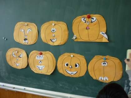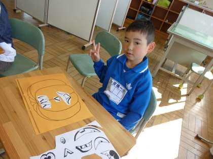 1・2年生は、ハロウィンかぼちゃの顔を作りました。