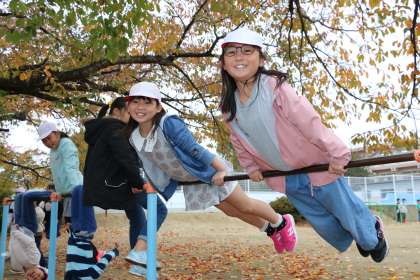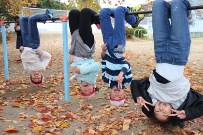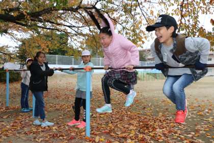 鉄棒の周りには、たくさんの子どもたちが集まってきます!