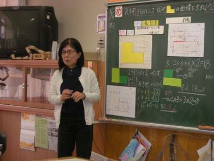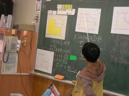 4年1組算数科「広さを調べよう」の学習の様子です。