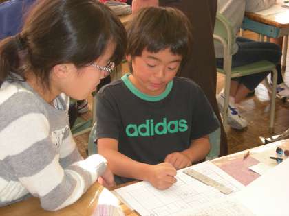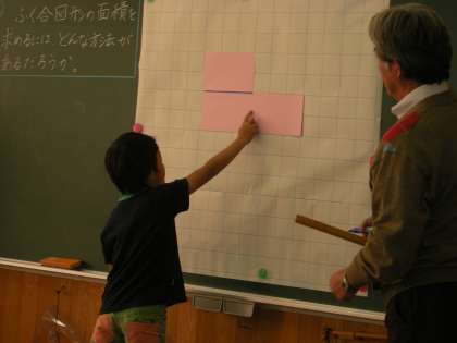 4年2組算数科「広さを調べよう」の授業の様子です。