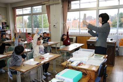 たくさん先生方がきていて、子ども達は少し緊張していましたが、「し」んけんに学習に取り組むことができました。