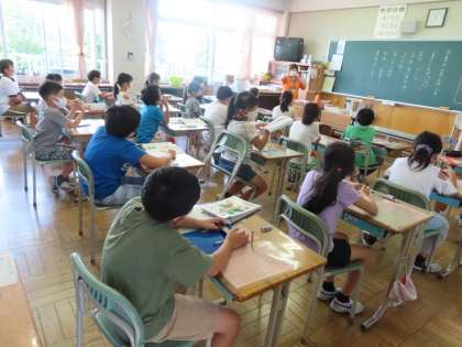 朝8時の暑さ指数が約27度「警戒レベル」でした。エアコンを入れるとともに、双方の窓(校庭側と向かい合った廊下側)を5cm程度開けた常時換気を行いました。