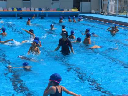 水が気持ちよいと感じる今日。プールでは1校時から水泳学習が行われました。今日が今年最後となる学級もあるので、いつも以上に意識を集中して取り組んでいたように見えました。(1年生が「もぐれるようになったよ!」「浮けたよ!」とうれしそうに教えてくれました。)