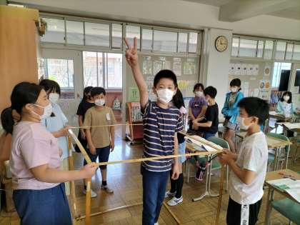 算数で、1立方メートルの学習をしました。高学年の算数は、だんだん具体的な物で表すことが難しくなってきますが、できるだけ実際の量感をつかませたいと思います。