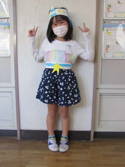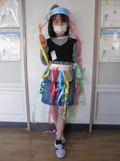 腰や頭にわっかをつけて、変身!わっかに飾りを付けて、どんな風にしようかなと考えながら作っていました。みんな、すてきに変身しましたね。