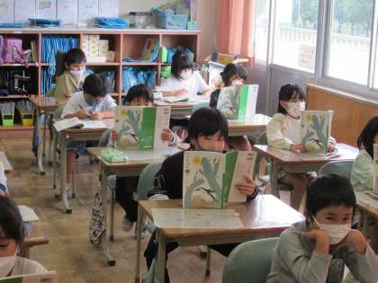国語ではスイミーを学習しています。スイミーの気持ちになったり、スイミーに手紙を書いたりし、物語の世界にひたっています。