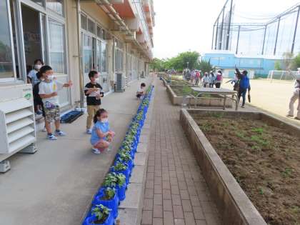 修学旅行に出かける6年生。あいさつを元気にかわし、バスへ向かいました。1年生たちが「いってらっしゃい!」と見送る姿がほほえましいです。