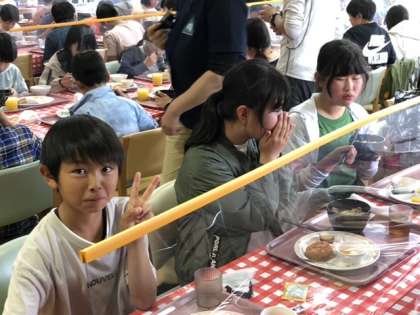 磐梯青少年交流の家に到着してすぐお昼を食べました。メニューはけんちんうどん、メンチカツなどでした。五色沼探勝路トレッキングで歩いてお腹ぺこぺこの6年生。感謝の気持ちを込めて、美味しくいただきました。