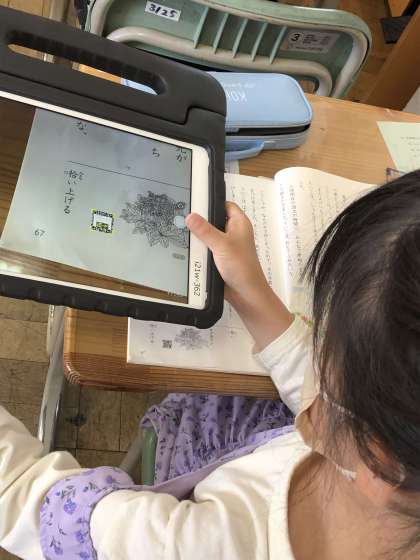 子ども達は、タブレットを学習ツールとして、さまざまな場面で活用しています。