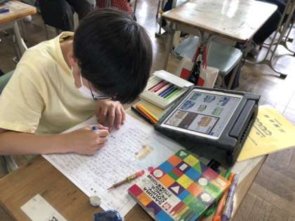 6年生では、金曜日に修学旅行についての新聞作りを行いました。体験したままで終わらず、自分が気づいたことや学んだこと、疑問に思ったこと、思い出などを絵や文に表すことで、自分の考えをまとめていました。記事を読む人により伝わるように、国語で学習したことを活かして表現していました。修学旅行の写真や動画を見て、余韻に浸りながら楽しく取り組んでいました。