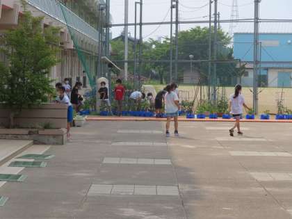 朝は雲が広がっていましたが、子どもたちが登校するころの気温は約24度、じめっとした暑さを感じました。登校後、授業の準備をすばやく行い、自分のすべき朝の活動を行う姿にうれしくなりました。