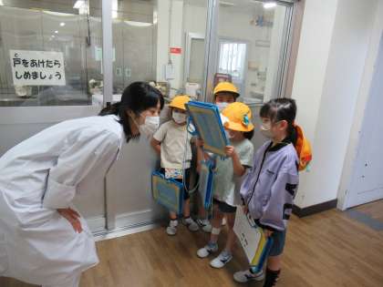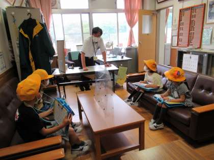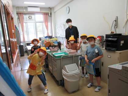 延期されていた学校探検を今日行いました。時間差をつけて密にならないように感染対策をしての実施です。日頃はなかなか入ることのできない校長室や職員室、事務室など中に入れてもらって、お話を聞いて、楽しい活動ができました。