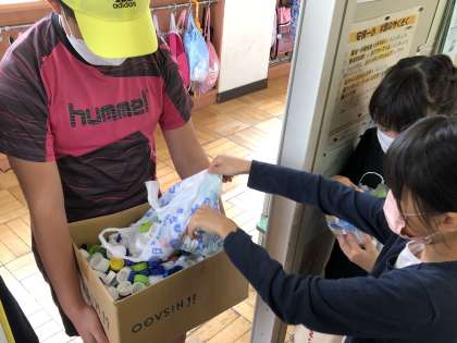 お友だちが、袋いっぱいのキャップを持ってきてくれました。