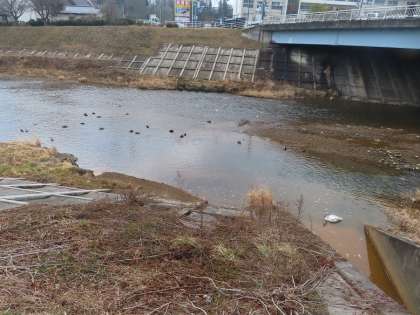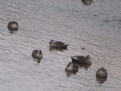 笹原川をながめると、いつもよりたくさんのカモさんが泳いでいました。