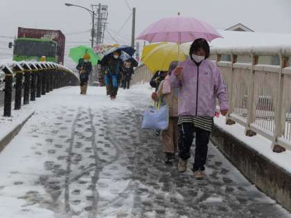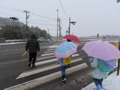 湿った雪が積もり、滑りやすくなっていたので、新栄橋や学校前通学路の雪かきをするとともに、下校時に一緒に歩き、見守り活動を行いました。お家の方々も通学路で見守ってくださり、安全に下校できたようです。ご協力に心より感謝いたします。