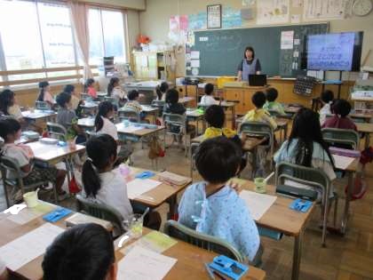 学級活動では、保健の先生から歯磨きの仕方を教えてもらいました。まず、磨き残しがないか赤い薬を使って調べました。次に、正しく磨く練習をしました。「たて磨き」、「よこ磨き」が、とても上手になりました。これからも、ピカピカの歯が続きますように、お家でもやってみてくださいね☆