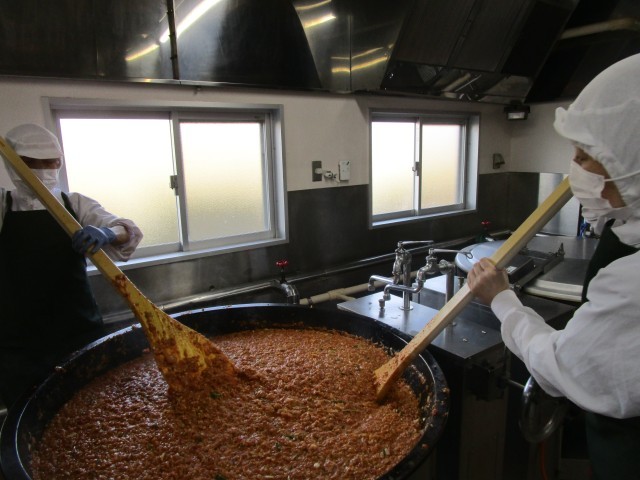今日はたっぷりの量のミートソースを調理員さんが、ふたりがかりで炒めて作ってくださいました!