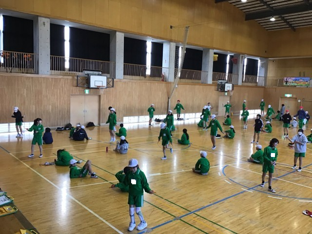 今日の体育は、学年でなわとびの練習をしました。