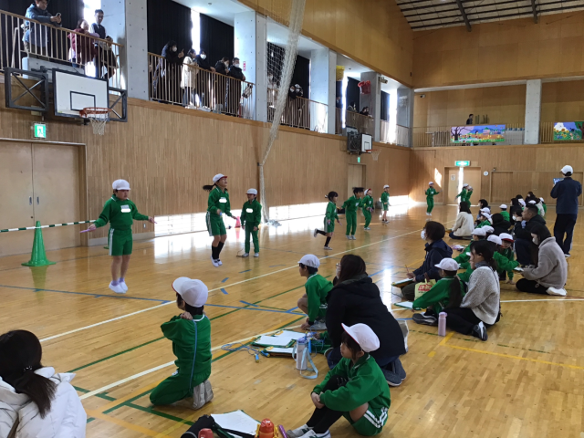2年生は,なわとび記録会を行いました。児童のみんなは,朝からやる気がみなぎっていました。2分間の持久跳びと自分が選んだ2つの種目跳び,アトラクションとして長縄跳び(八の字跳び)を行いました。自己ベスト更新できて嬉しい思いをした子,思うような結果が残せず悔しい思いをした子の両方おりますが,最後まで全力でやりきる姿は,中学年である三年生に向けてとても頼もしく感じました。お忙しいところボランティアとしてご協力下さった保護者の方々,観覧して下さった保護者の方々誠にありがとうございました。