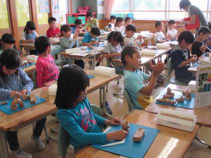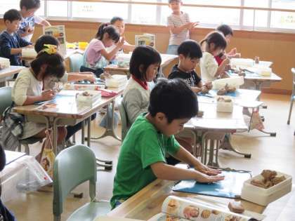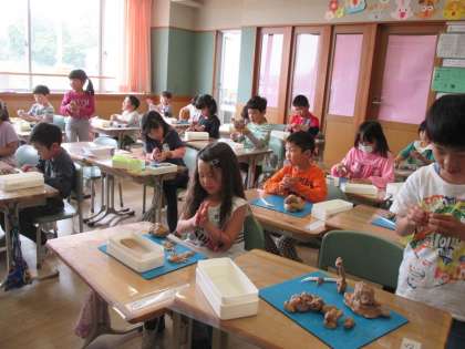 今日は、図工の時間に粘土で自分の好きなものをいっぱい作りました。大きな粘土の塊からひねり出して、恐竜を作る子、小さく丸めた塊からハンバーガーを作り出す子など、思い思いに粘土遊びを楽しみました。図工の学習の2時間があっという間に過ぎ去りました。さて、いよいよ明後日は、運動会です。ダンスも素敵に仕上がってきました。子供たちが元気に参加できるよう、御家庭での体調管理もよろしくお願いします。