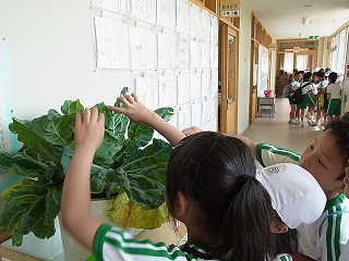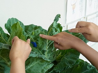 運動会の朝。前日から動かなくなっていたアオムシがサナギになっていました。いつチョウチョになるのか,楽しみです。