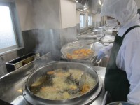 「麦ごはん・味付け海苔・牛乳・豚肉の四川ソース・青梗菜のおひたし・わかめスープ」です。今日もとても暑い1日でした。豚肉の四川ソースは豚肉を1時間半生姜とねぎで煮込みます。豚肉を取り出し、テンメンジャン、にんにく、しょうゆ、ごま油で四川ソースを作りからめます。味が濃いのでご飯にぴったりのおかずです。1時間煮込んだスープをわかめスープに使います。豚肉を茹でてているところです。出汁がきいたおいしいスープができました。