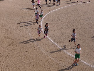 マラソン記録会に向けて,今日の朝からマラソンに取り組みました。朝は毎週,月水金の三日間。5周走ることができます。業間や昼休みは,自分のペースで走りますが,校庭で遊んでいる人たちに注意しながら走るようになります。マラソンカードを全部色を塗れるようがんばっています。