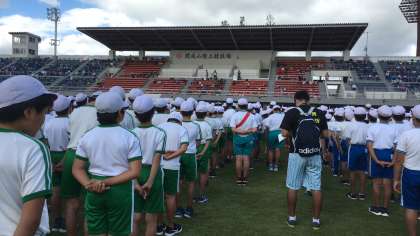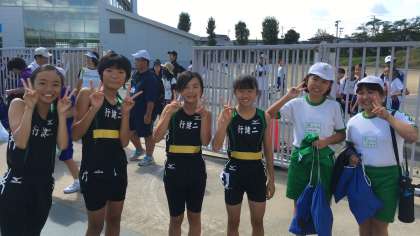 9/21 開成山陸上競技場で郡山市内小学校陸上競技交歓会が行われています。開会式の後 50m走 4×100mリレーと進行しています。みんな自己新記録目指して頑張っています。
