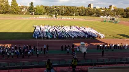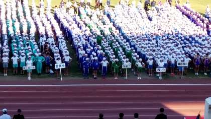 交歓会の締めくくりの閉会式に参加しました。真ん中に陣取り、立派な態度で参加できました。