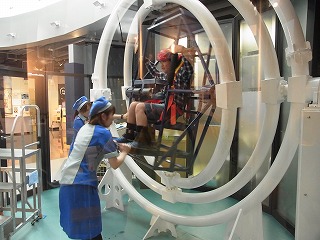 展示ゾーンでは,無重力体験など宇宙遊泳を体験したり,科学実験を楽しんだりすることが出来ました。