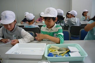 サイエンス教室では,「回るんdeスッテ」を作るため,講師の先生達のお話をしっかり聞きながら作ることができました。できた作品は,白い球が右に回ったり左に回ったりとても不思議で楽しい科学おもちゃができあがりました。