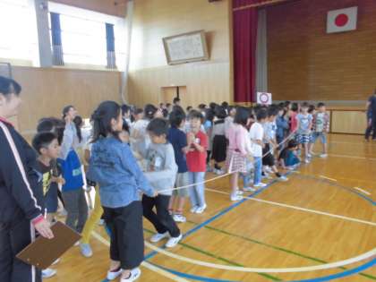 6月18日2校時の休み時間に給食委員会児童による、食育クイズが行われました。15日には6年生の給食委員会の児童が1年生全員にクイズをだし、今日は5年生が2年生にクイズを出しました。クイズは自分たちで考えました。「きゅうりの種は食べてもよい」「正解は○です、きゅうりはたねも食べられるので、食べてくださいね。」など、2年生は大変盛り上がりました。○×クイズに参加して、参加賞の塗り絵をもらいました。