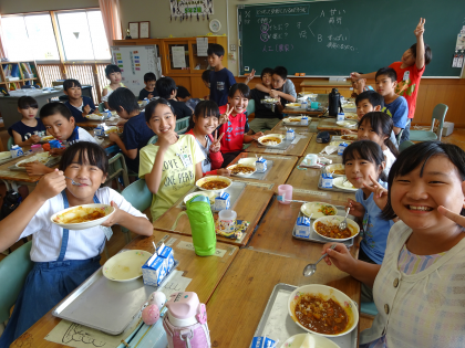 授業を見ていただいたり、一緒に給食を食べてくださったりしました。写真は給食の時のものです。