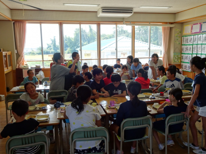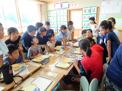 食べ終わるとみんな実習生のもとに集まり楽しそうに話していました。短い時間でしたが、とても仲良くなれたようです。