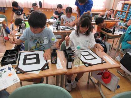 子ども達は、習字の時間をとても楽しみにしています。専科の先生のていねいなご指導により力をつけてきました。秋には、富久山町の文化祭が行われます。すばらしい作品の完成を楽しみにしています。