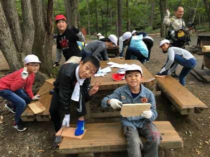 午後から 焼き板体験です。自分の思い出のものを作っています。