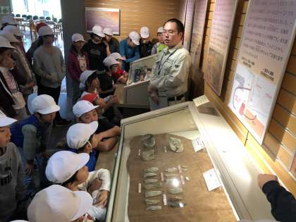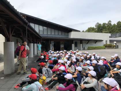 白河市のまほろんに到着しました。二小は、遺跡に囲まれた場所だということにびっくり!