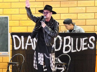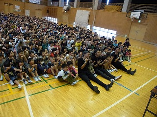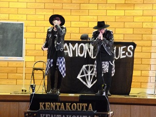 鑑賞教室では,福岡県出身の双子のデュオ 健太康太によるコンサートがありました。迫力ある歌声で皆楽しく盛り上がりました。