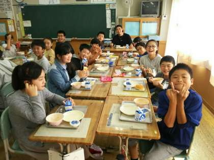 DJのまこっちゃんさんも一緒に給食を食べました。