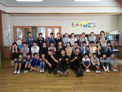 給食後は、ワークスペースで記念撮影をし、健太康太さん、まこっちゃんを交え、男女対抗で花いちもんめをして大盛り上がりでした!