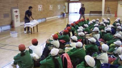 無事に到着です。入所の集いの後は、ベッドメーキングの説明を聞きました。