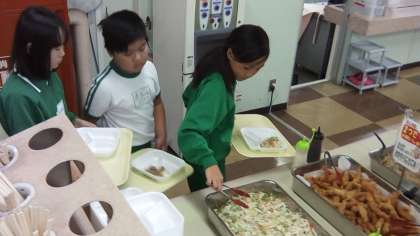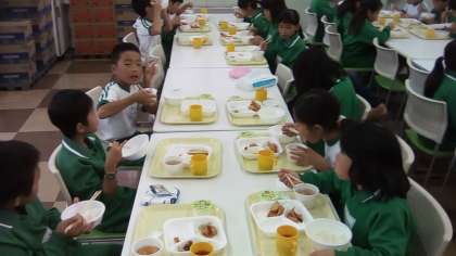 楽しく美味しいお昼ご飯の時間です。たくさん食べて午後の活動にそなえます。