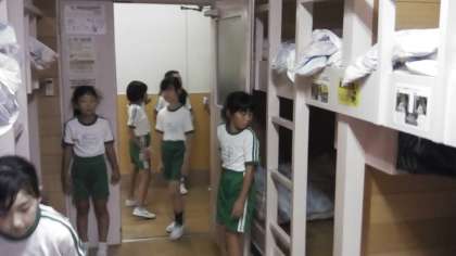 活動がおわりベッドメーキングをしました。何度もやり直したり協力したりしてできあがりました。