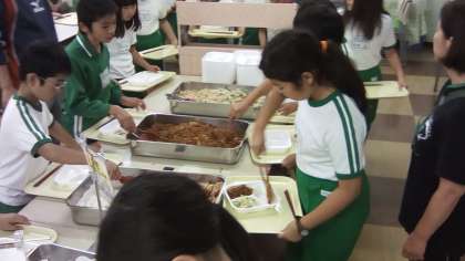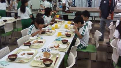 お楽しみの夕食です。班で楽しくいただきます。