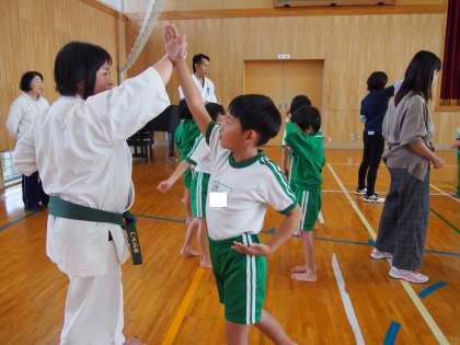 初めて空手をやった子供たちや保護者の方々が多く、初めは緊張した様子でしたが、いい汗をかき、とてもいい笑顔で取り組むことができました!「押忍!!」と大きな声で言っている姿がかっこよかったです!