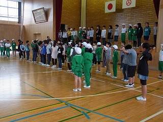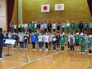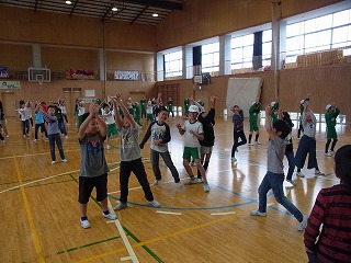 ダンス・歌の練習をしました。初めての体育館での練習でしたが,合唱祭で身につけた発声方法でとても上手に歌うことができました。