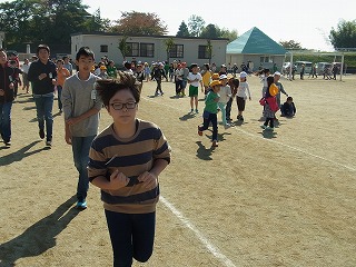 昨日は,あいにくの雨でマラソンタイムを行うことができませんでした。今日は,とても良い天気で,子どもたちも元気にマラソンに参加していました。「あと1周」「3周目」など自分の目標を決めて走っていました。